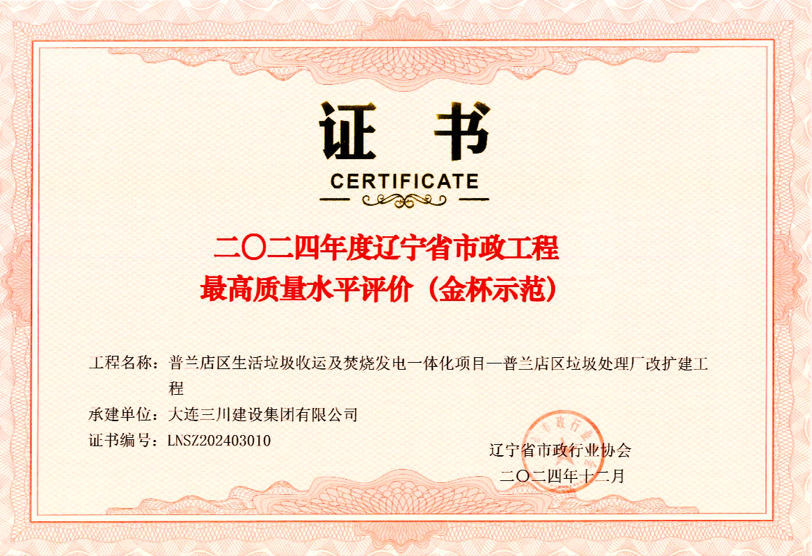 近日,710公海赌赌船官网欢迎您集团承建的普兰店区生活垃圾收运及焚烧发电一体化项目 —— 普兰店区垃圾处理厂改扩建工程,荣获 2024 年度辽宁省市政工程最高质量水平评价(金杯示范)。这一成绩标志着该项...